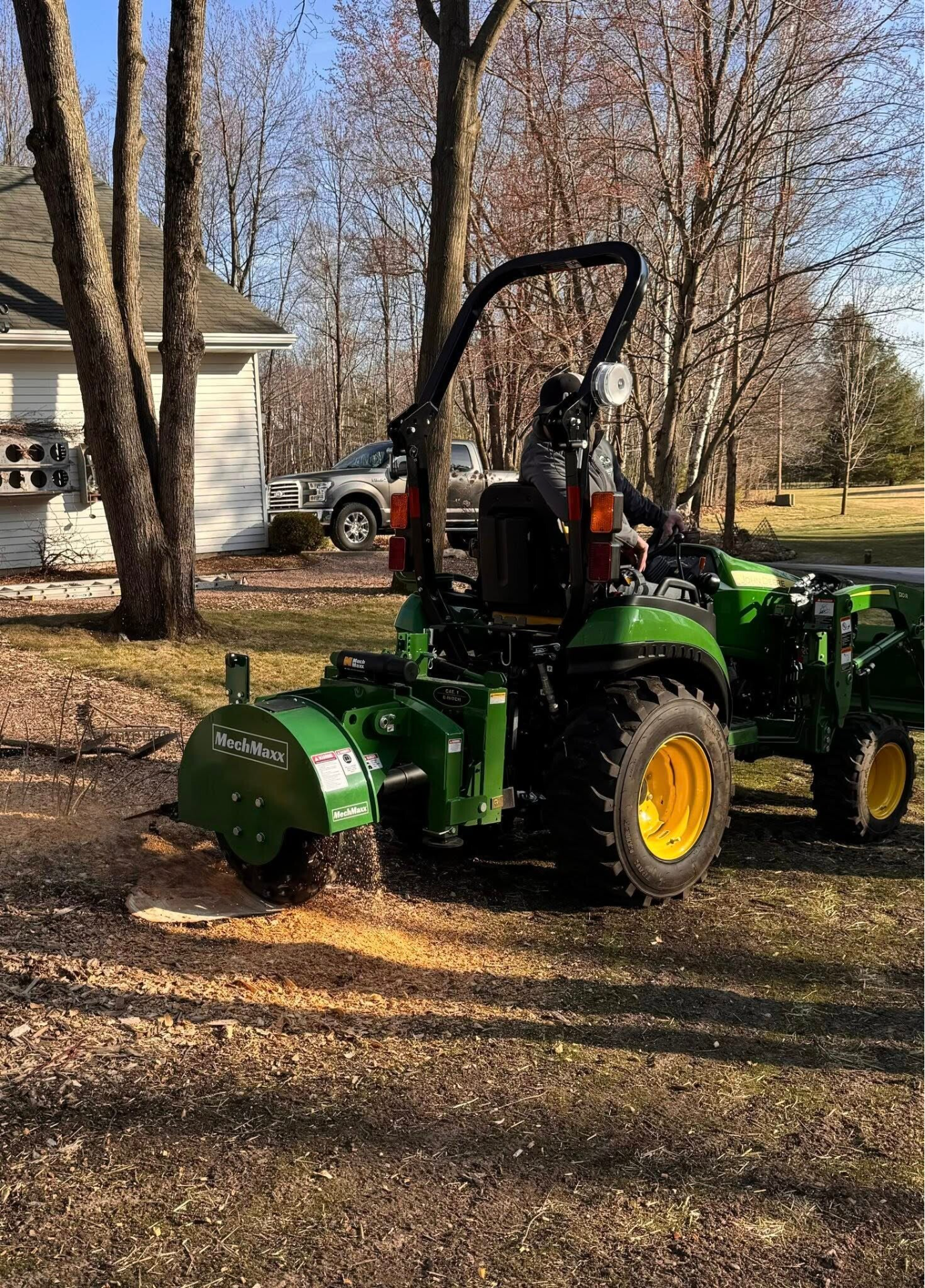Using a rear mounted stump grinder, backhoe bucket or ripper blade, we are able to grind or dig out the stump and root system within our capabilities.